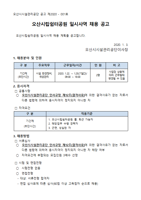 2020년도 설 연휴 간 일시사역 채용 공고문.hwp